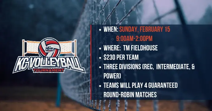 Grab your friends, your game face, and your competitive spirit —it’s time for KC Crew’s Indoor Volleyball Tournament! Choose from Recreational, Intermediate & Power divisions.